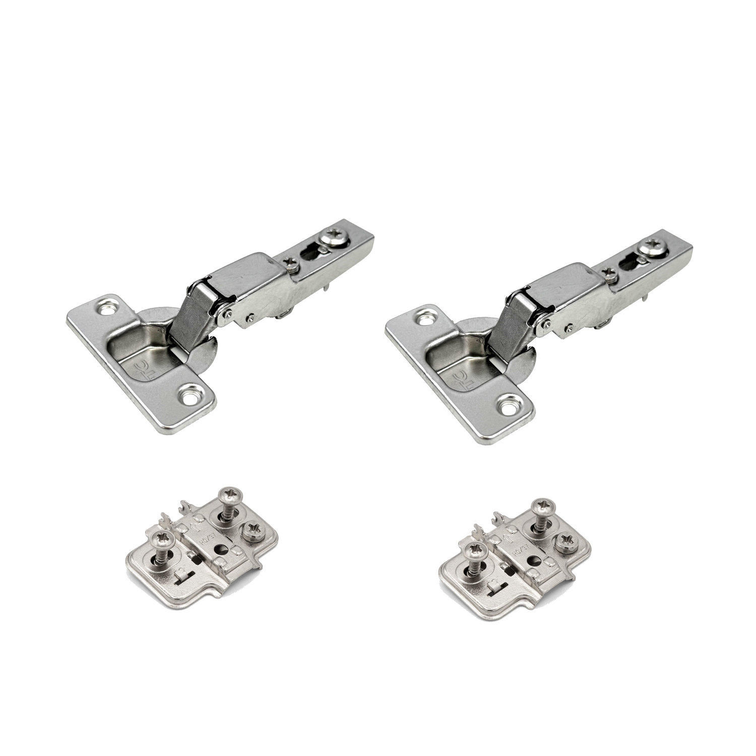 The Premio 110° soft close hinge offers precise half overlay door alignment with smooth, silent closing action. Finished in durable nickel, it features a anyway clip on wood screw adjustable plate for easy, accurate installation and adjustment. Supplied in a convenient 2-pack, these hinges provide reliable performance and enhanced cabinet longevity.