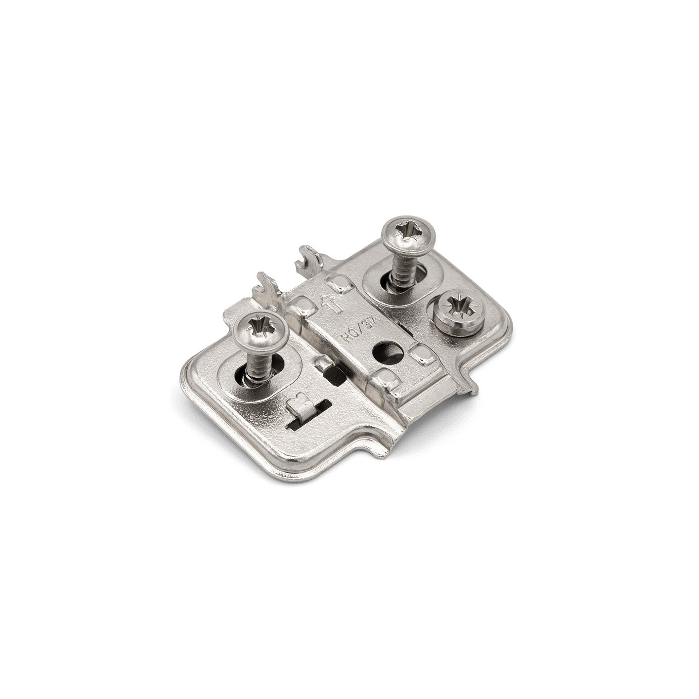 The Premio hinge range matching cam adjustable plate with wood screws. H=0.