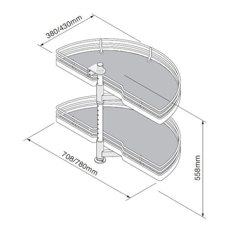 1-2 Carousel, To suit 800mm Cabinet, Wire Mesh, Adjustable Baskets