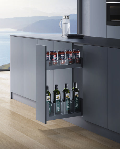 IVIRO, Pull out Bottle Rack, Solid Base Baskets, Universal Fitting, To Suit 150mm Cabinet