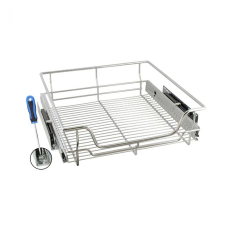 Solid Base Wire Basket, To Suit 300-600mm Cabinet, Polished Chrome, Soft Close
