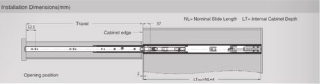 DTC, UltraSlim 84mm, Soft Close Full Side Drawer Runner System, D270-450mm x H84mm