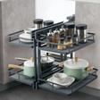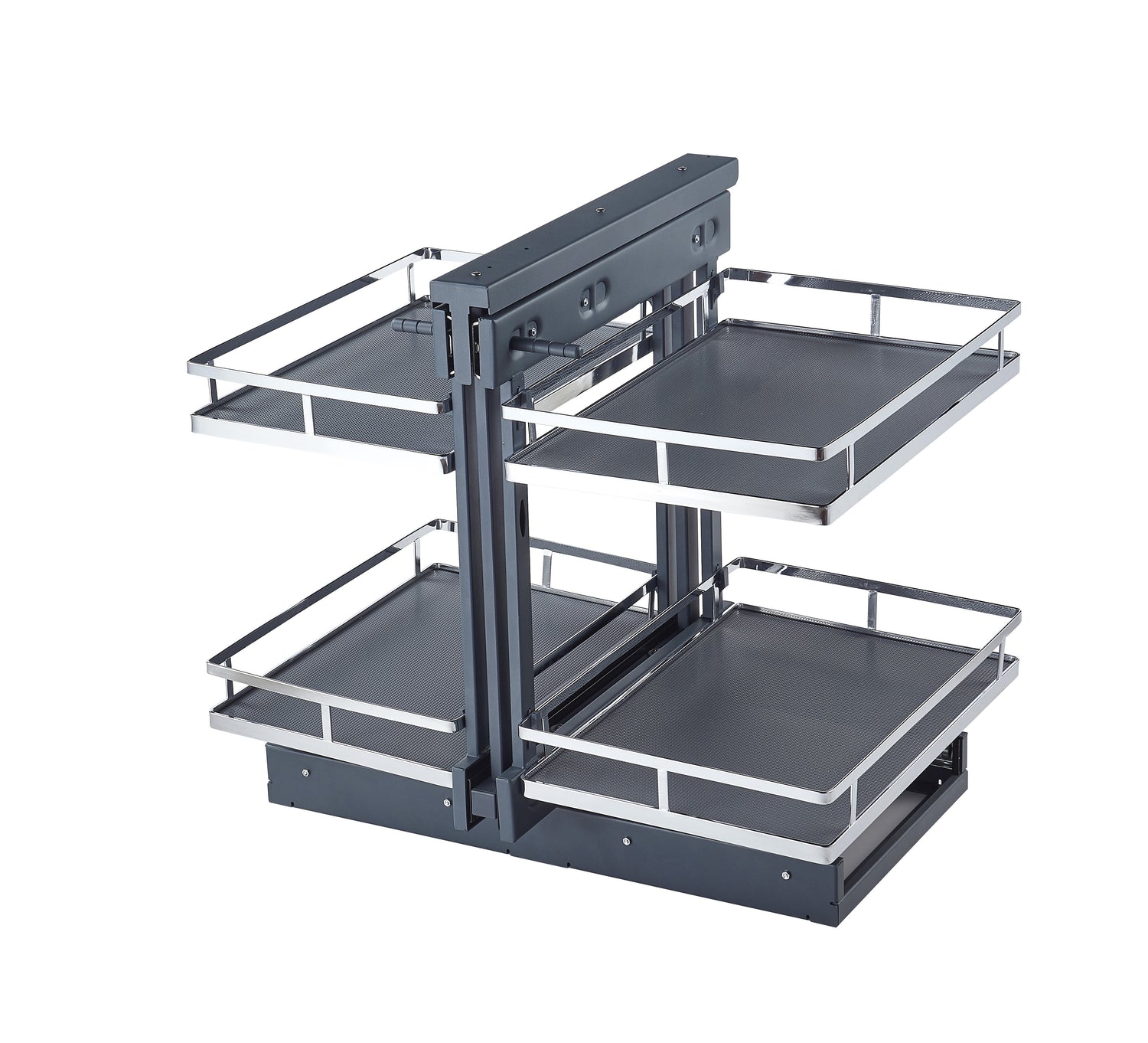 IVIRO Magic Corner Pull Out Unit provides easy access to 800-1000mm cabinets with its innovative and efficient design. Featuring pull out solid base shelves and soft closing, it maximizes accessible space and eliminates noise. The anthracite grey colour adds a modern touch to any kitchen.